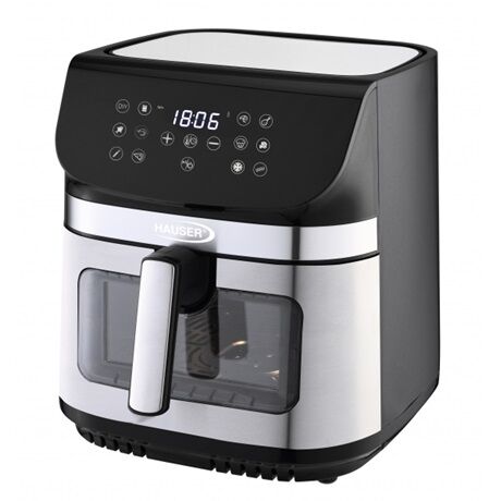 Hauser AFD-918 forrólevegős sütő (9 l)A Hauser AFD-918 forrólevegős sütő ideális választás mindenkinek, aki gyorsan, egészségesebben és kényelmesen szeretne sütni. A nagy, 9 literes kapacitásnak köszönhetően akár az egész család számára egyszerre készíthető el az étel, miközben jóval kevesebb olajra van szükség, mint a hagyományos sütési módoknál.Főbb előnyökEgészségesebb sütés: ételek készítése olaj nélkül, vagy akár 80%-kal kevesebb olajjalFry Force 360° technológia: gyors és egyenletes sütés minden oldalonKívül ropogós, belül omlós ételek a forró levegős technológiának köszönhetőenDupla, alsó-felső fűtőszál az egyenletes hőeloszlásértDigitális kijelző és egyszerű, érthető kezelőfelületFry Force 360° technológiaA Fry Force 360° technológia a forró levegőt nagy sebességgel keringeti a sütőtérben, így az étel minden oldala egyenletesen sül meg. Ennek eredménye a kívül ropogós, belül szaftos, omlós állag, jelentősen kevesebb olaj felhasználása mellett.Praktikus sütőprogramok és funkciók12 előre beállított program – köztük 9 sütőprogram kifejezetten:Fagyasztott krumpliMarha steakSertésszeletGarnélaCsirkeszárnyCsirkecombCsirkemellFagyasztott halrudakZöldségRázás funkció – figyelmeztetés az étel átmozgatására az egyenletesebb sütésért0–60 perces időzítő – beállítható működési idő80–200 °C közötti hőmérsékletszabályozásDigitális kijelző – jól látható idő- és hőmérséklet-jelzésselBiztonság és kényelemTúlmelegedés elleni védelem a biztonságos működésértAutomatikus kikapcsolás a sütőkosár eltávolításakorFigyelőablak – az étel állapota egyszerűen ellenőrizhető a folyamat megszakítása nélkülTapadásmentes sütőkosár és sütőtálca – könnyű tisztítás, egyszerű használatKiváló teljesítmény és minőség2200 W teljesítmény a gyors felmelegedésért és hatékony sütésértRozsdamentes acél első burkolat (Inox szín) – modern, elegáns megjelenésSzabadonálló kivitel – egyszerűen elhelyezhető bármely konyhapultonKapacitás és méretekSütőkosár kapacitása: 9 lSzélesség: 32 cmMagasság: 41 cmMélység: 34 cmTömeg: 5,9 kgMűszaki adatokMax. teljesítmény: 2200 WHőmérséklet-tartomány: 80–200 °CMűködési mód: HálózatiHőmérséklet-szabályozás: IgenProgramok száma: 12Kijelző: Igen (digitális)Időzítő: Igen (0–60 perc)Túlmelegedés elleni védelem: IgenA Hauser AFD-918 forrólevegős sütő ideális választás azoknak, akik gyorsan, praktikus módon és egészségesebben szeretnék elkészíteni kedvenc ételeiket, kompromisszumok nélkül az íz és a ropogós textúra terén.